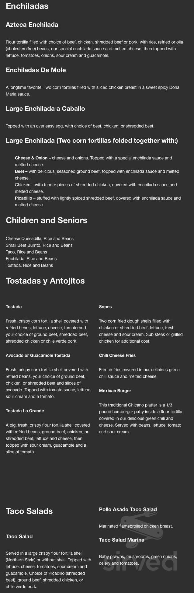 Grand Azteca Mexican Restaurant Menu In Granby Colorado Usa